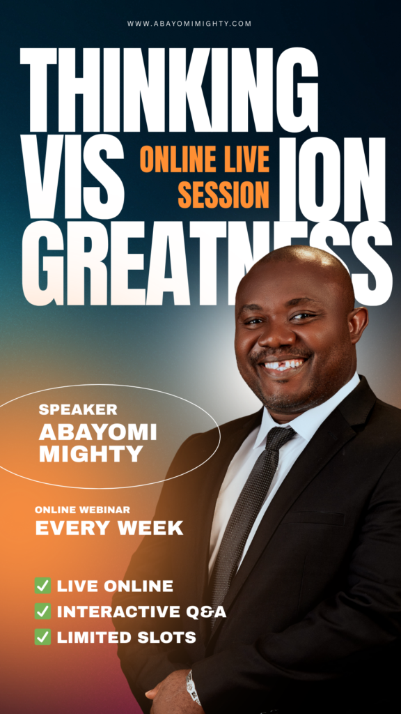 Abayomi will share the key principles behind Thinking, Vision, and Greatness, with practical lessons you can apply immediately.